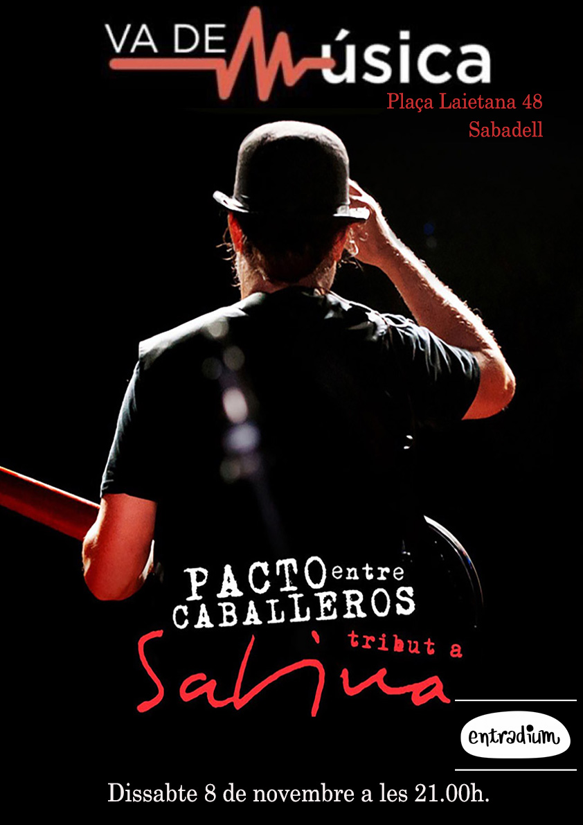 Va De Música Plaça Laietana, 48,, Sabadell, Barcelona, SpainPacto entre caballeros, es una banda tributo a Sabina, con seis músicos en escena liderados por Julián de Eusebio, que desde el 2014 desgrana con soltura y respeto todo un repertorio de los mejores y más conocidos temas de este popular cantautor. El resultado es un buen homenaje, que hace revivir en directo, tanto en...